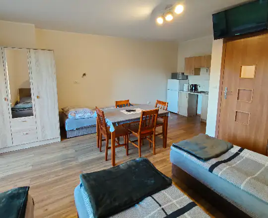 Przestronne pokoje o powierzchni ok. 30 m² wraz z łazienką i WC przeznaczone są dla 3-4 osób. W pokojach znajduje się telewizor LCD, duża szafa, aneks kuchenny w tym lodówka, kuchenka i czajnik elektryczny.
